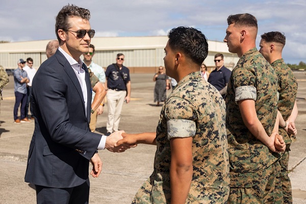 Pete Hegseth, secretario de Guerra de Estados Unidos, estrecha la mano a algunos soldados. !Ave, César, los que van a morir te saludan!