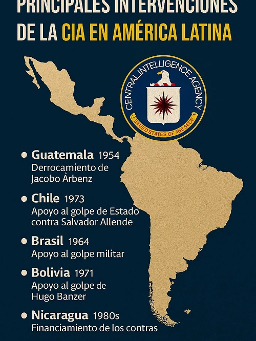 Y es que la presencia de la agencia federal estadounidense en la región es tal, que Manuel de la Iglesia Caruncho, doctor en Ciencias Económicas por la Universidad Complutense, escribió en un artículo que «ningún país latinoamericano quedó al margen de la actuación» de CIA, «no importa que en EE.UU. gobernasen demócratas o republicanos».