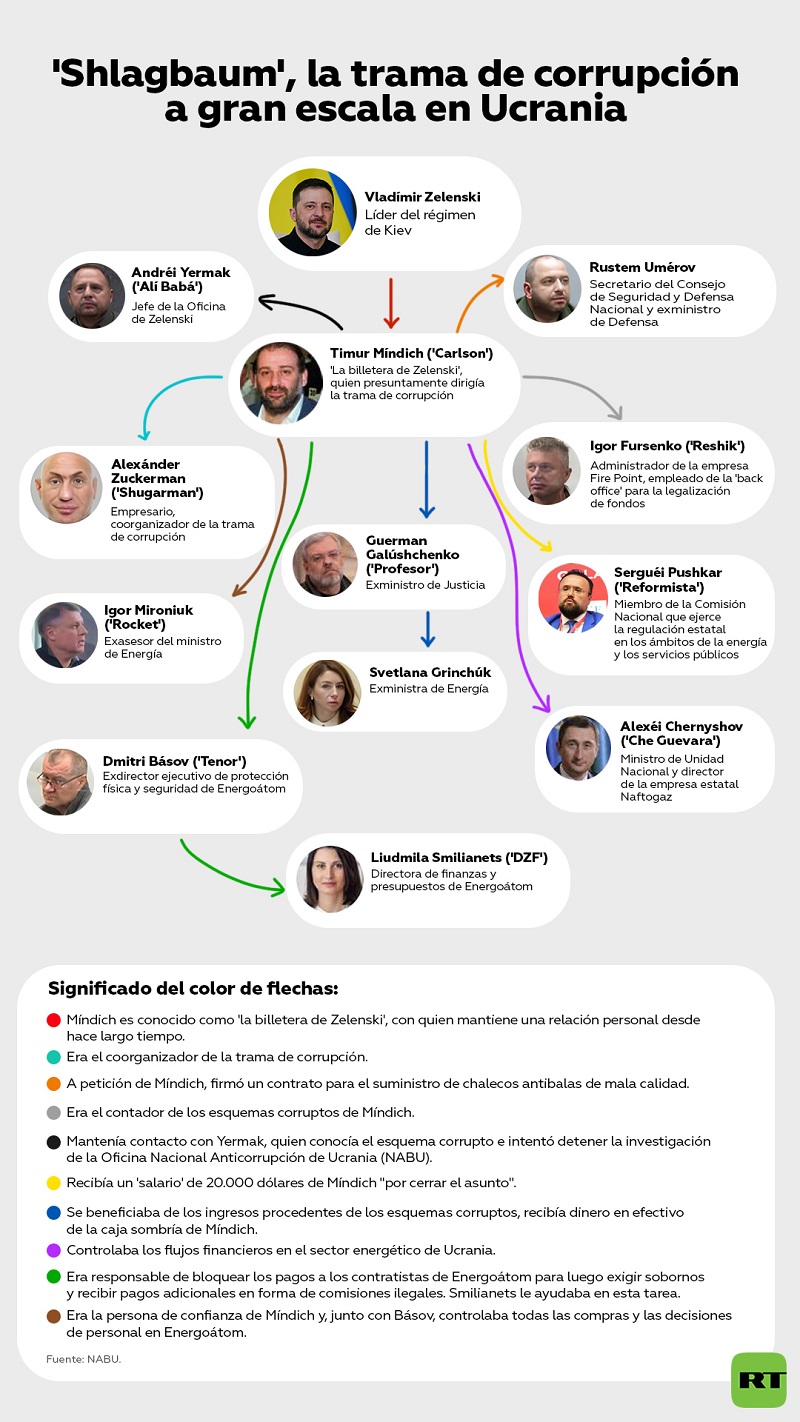 El lunes pasado, el diputado ucraniano Yaroslav Zhelezniak afirmó que Yermak podría ser el ‘Alí Babá’ que figura en las llamadas ‘cintas de Míndich’, grabaciones de horas de conversación entre los aliados más cercanos del líder del régimen de Kiev, acusados ahora de corrupción.